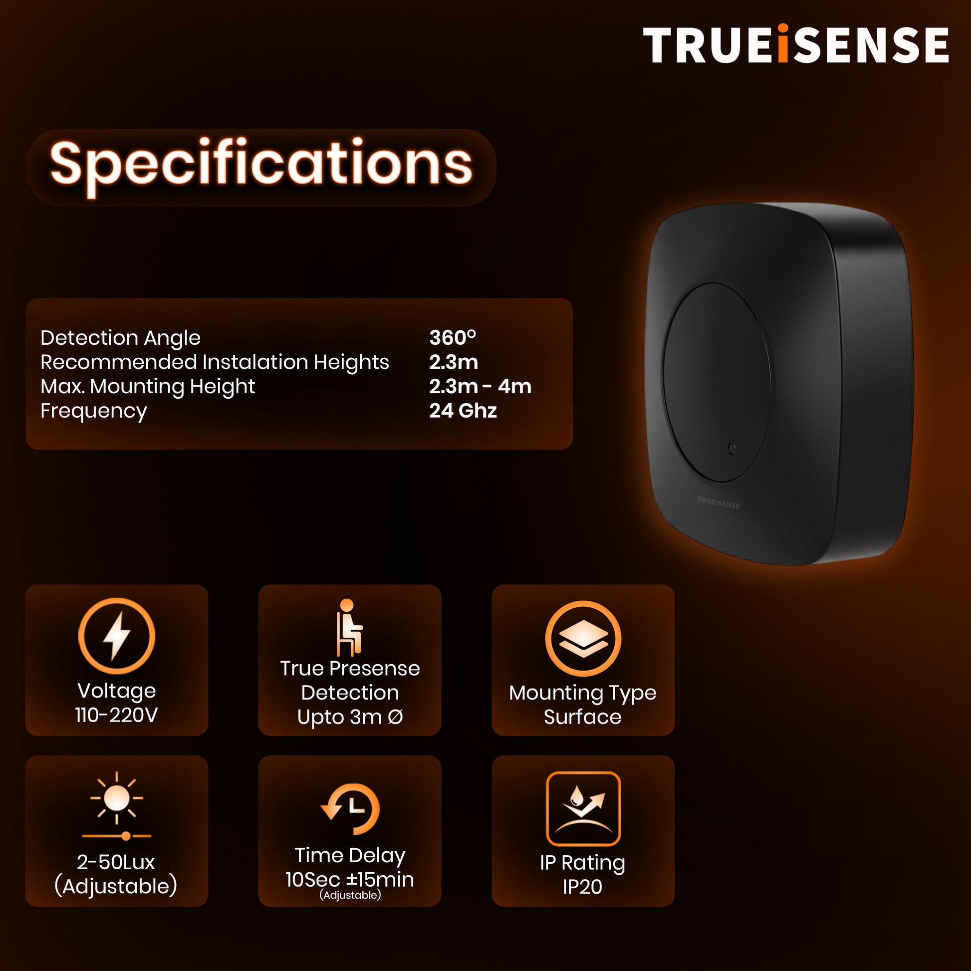 TRUEiSENSE | True Presence Sensor | OCT X LUO PRO | Auto On/Off | IP65 | Presence Round Bulkhead Light | Fully Automatic | Presence Detector