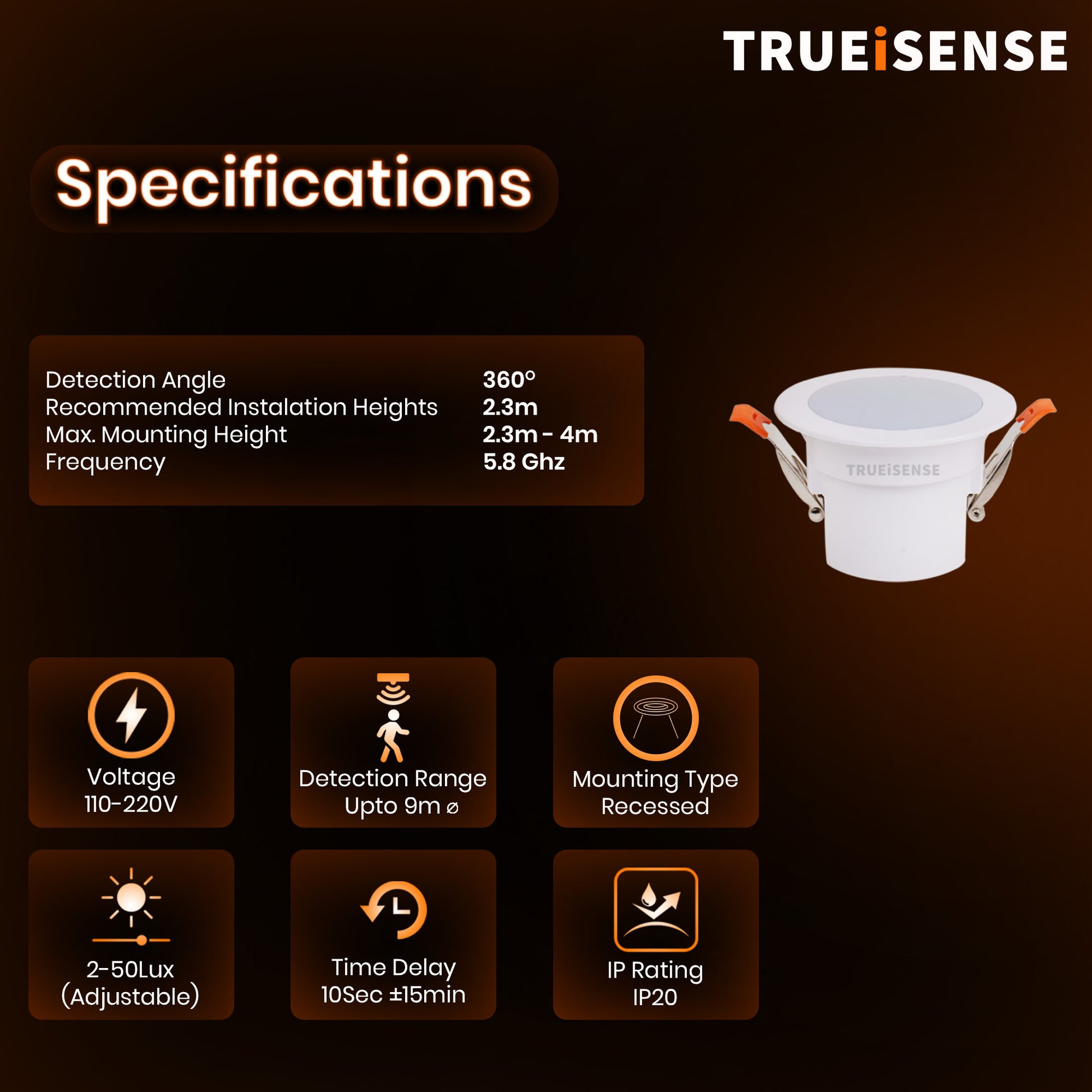 TRUEiSENSE | True Presence Sensor | OCT X LUO PRO | Auto On/Off | IP65 | Presence Round Bulkhead Light | Fully Automatic | Presence Detector